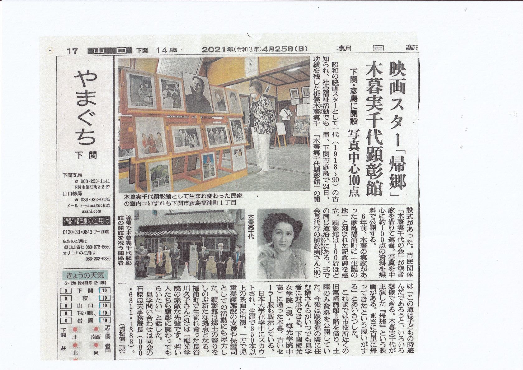 彦島福浦に「木暮実千代顕彰館誕生」