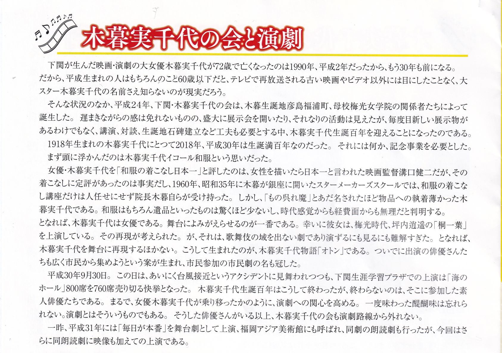 「木暮実千代の会が贈る市民劇」第二弾として